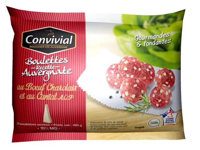 Local recipe meatballs are made Without GMO, without Allergenes, with peas protein and local Cantal cheese. The association between the tender meat and the flavorous cheese will make happy all the family.