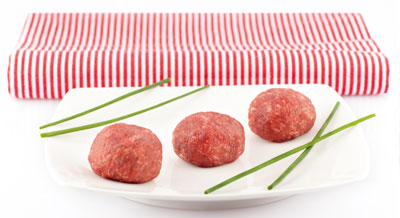 Hachage de "gros grains", respectant le plus possible la structure de la viande formage à basse pression puis surgélation et conditionnement.